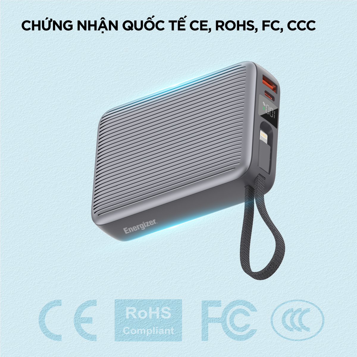 Energizer là thương hiệu Mỹ nổi tiếng toàn cầu & là sự lựa chọn tin cậy nhất cho người dùng di động. Vinh dự nằm trong TOP 10 biểu tượng thành công nhất của thế kỷ 20, Bạn sẽ không tìm thấy thiết bị sạc nào tích hợp nhiều chuẩn an toàn cao nhất từ Âu-Mỹ-Á như Energizer CCC,CE, FCC, ETL, CB, EAC, RoHS, Reach,ERP6, DOE6.